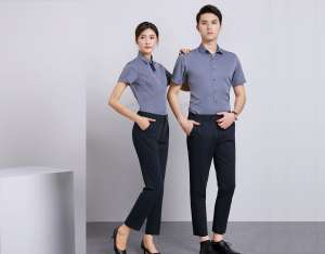 衬衫定制 时尚衬衫男女士夏季 灰色短袖衬衫