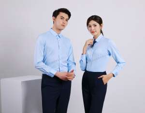 衬衫定制 时尚衬衫男女士春季 天蓝色时尚衬衫